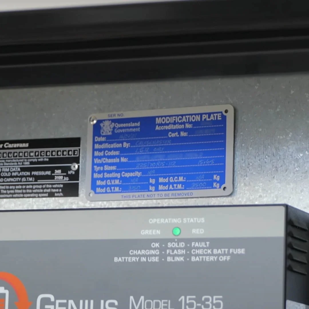 *For interstate registered caravans/trailers we can provide the required engineering evidence to provide to a TMR Engineer in the appropriate state to action the mod plate. (New ATMs are not legally effective until engineering approval and mod plate has been applied).